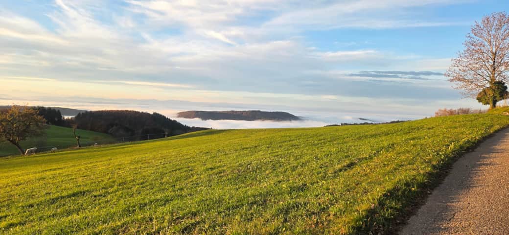 Willkommen bei Dreiland Ferienwohnungen in Gresgen – auf 700 Metern Höhe mit einem beeindruckenden Blick über das Wiesental hinunter nach Basel, ins Jura und Richtung Elsass.